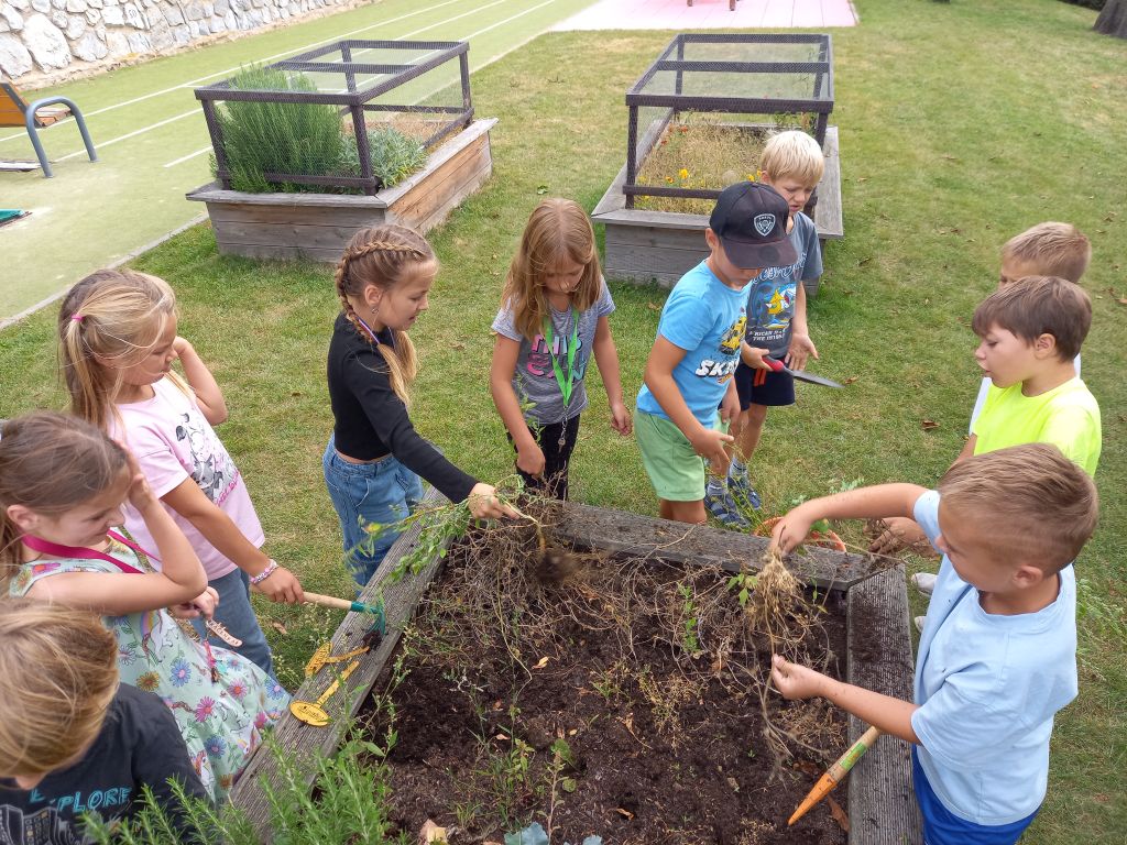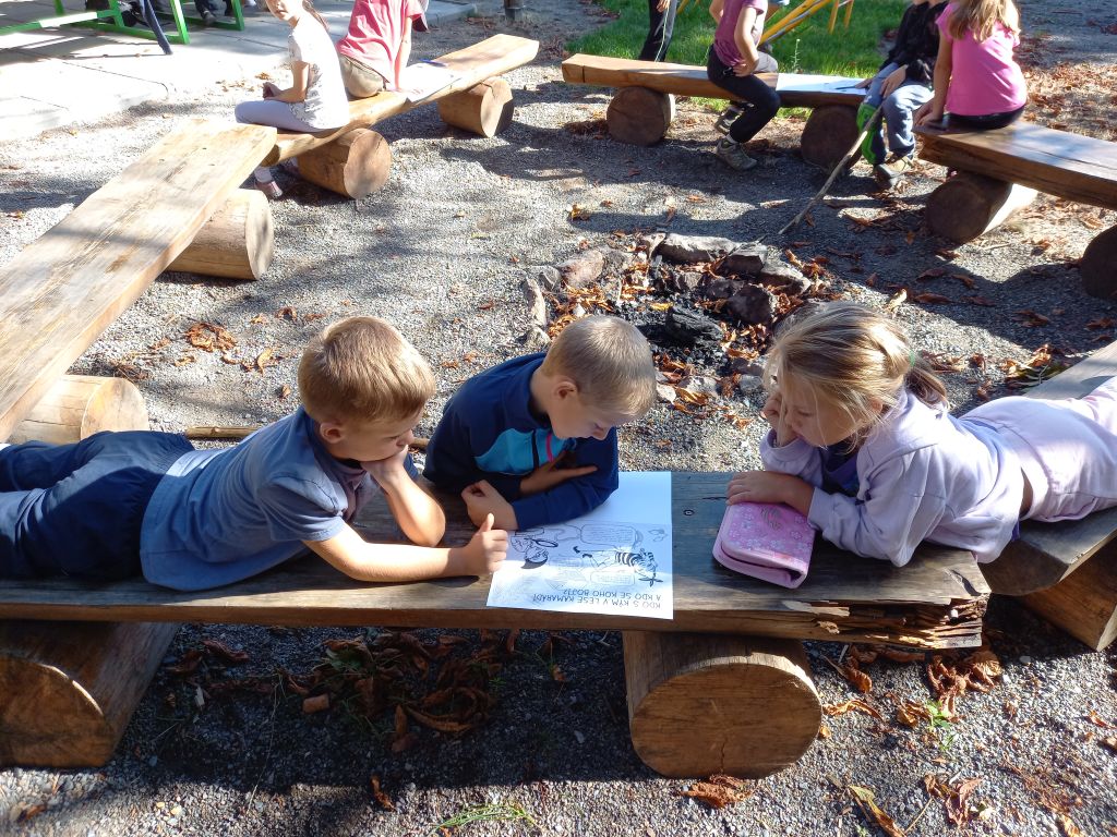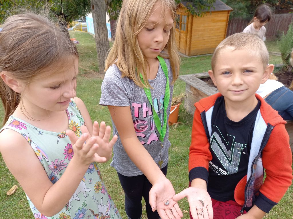 Krásné počasí nás láká ven. A i když zrovna sluníčko nesvítí, vyběhneme na hřiště alespoň na krátké aktivity třeba v matematice nebo češtině. Kromě toho venku máme možnost zkoumat a pozorovat přírodu mnohem lépe než ve třídě. Při práci na našem záhonu jsme objevili hned několik zajímavých živočichů :-).