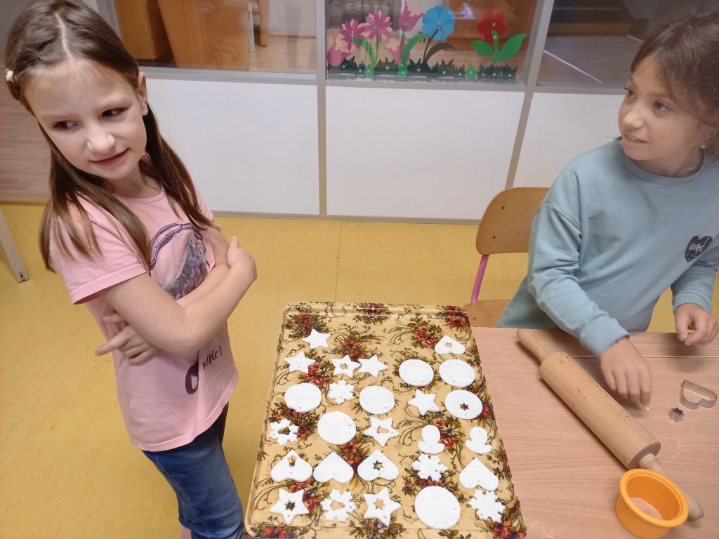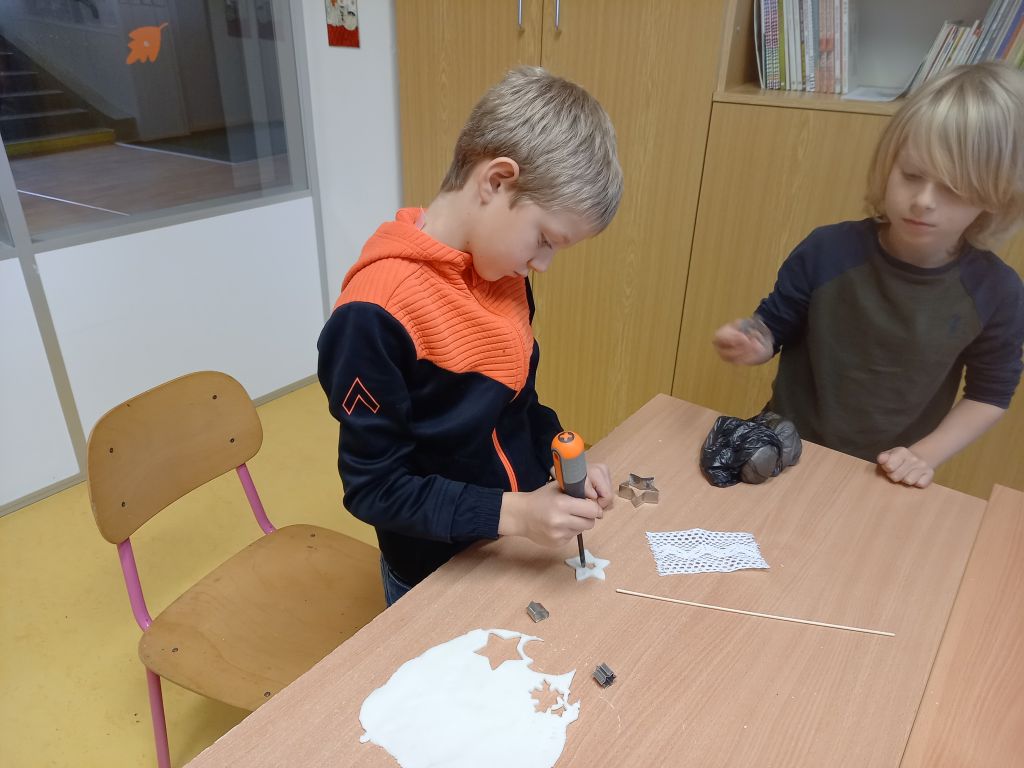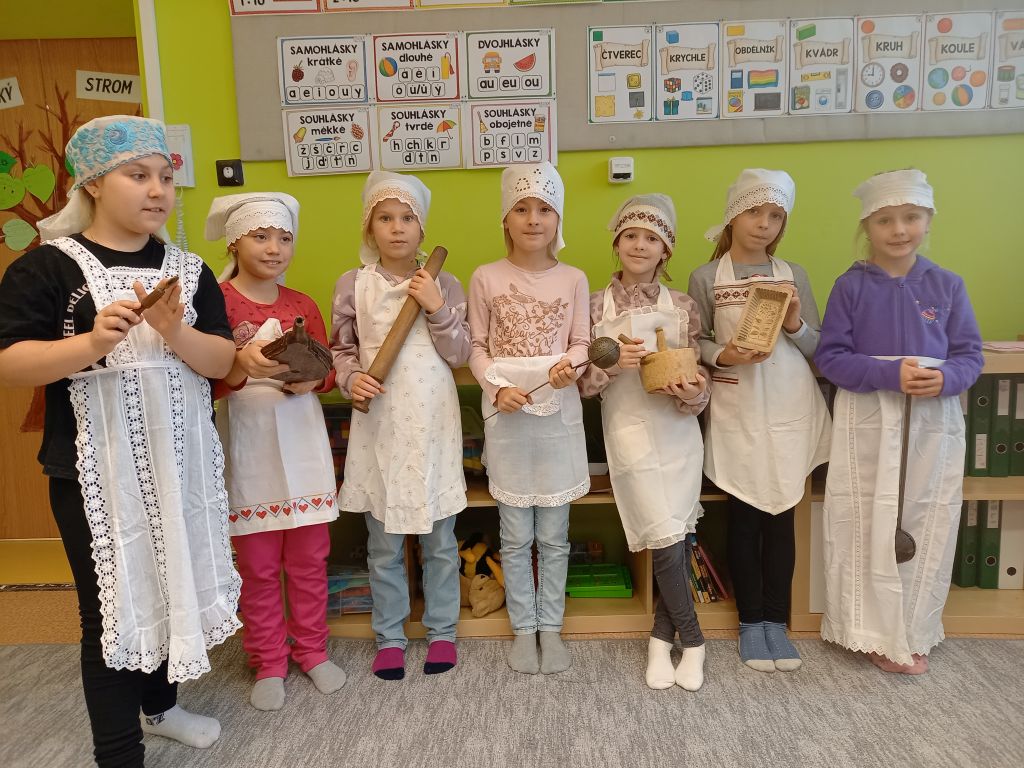 V listopadu nás potěšil první sníh i beseda s paní Svobodovou o zaniklých řemeslech a o životě našich prababiček. Tvořili jsme vánoční ozdoby na jarmark, vyráběli keramické andělíčky a užívali si nové cvičební pomůcky. Kromě toho jsme se samozřejmě také učili :-).